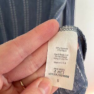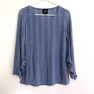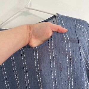 - blue / white textured dot vertical striped round neck 3/4 ish sleeve blouse top