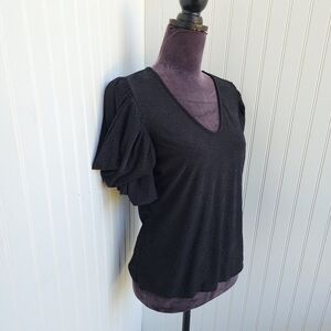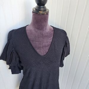 W5 Anthropologie Black Eyelet Stretchy Top Blouse Short Puff Sleeve Women's M