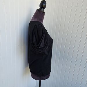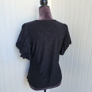 W5 Anthropologie Black Eyelet Stretchy Top Blouse Short Puff Sleeve Women's M A5