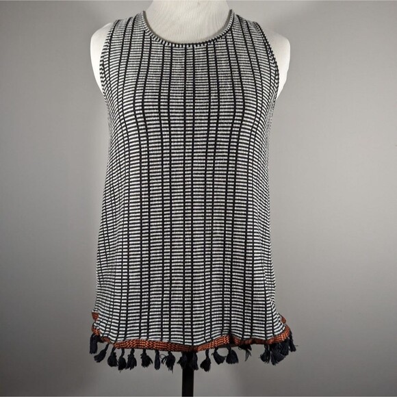 Good preowned condition W5 | Anthropologie Boho Sleeveless Stripe Tassel Top Women's Size S.