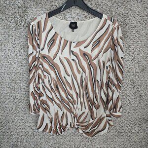 W5 Anthropologie Top Womens Large Brown Animal Print Blouse Scoop Neck Casual