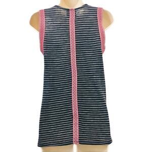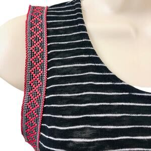 W5 black and white stripe sleeveless popover top with red tribal edging