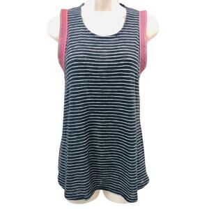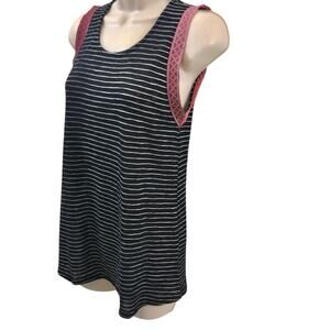 W5 Black and White Stripe Sleeveless Top with Red Tribal Edging Scoop Neckline