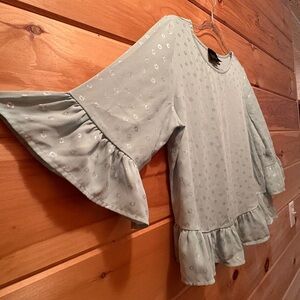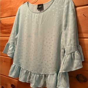 W5 Blue Blouse with Boxy Fit and Ruffled Cuffs