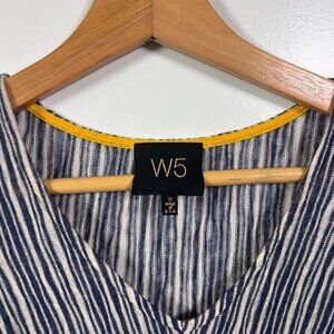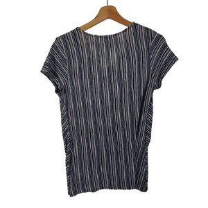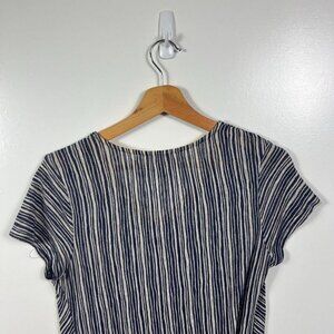 W5 Blue & White Striped Top Front Knot V Neck Short Sleeves size Small