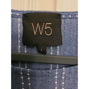W5 Concepts Anthropologie Womens Top Size Large Blue Stripe 3/4 Ruffled Sleeve