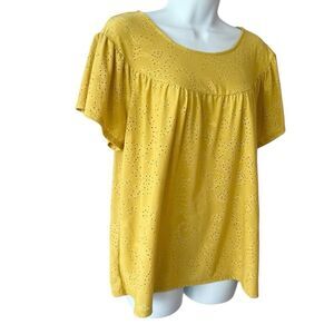 W5 Concepts Women’s XL Floral Eyelet Flutter Sleeve Top NWT
