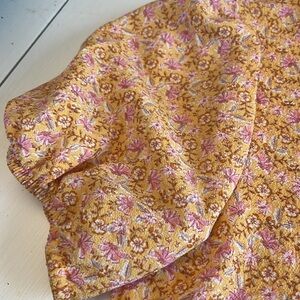 W5 Gold Floral Short Sleeve Babydoll Top with puff Sleeve Size M NWOT
