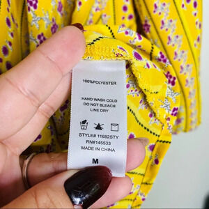 W5 Gold Yellow Floral Boho Surplice Blouse Women’s Size Medium