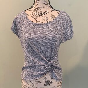 W5 Knit Short Sleeve Twist Front T-Shirt Blue and White Marled Women’s Small