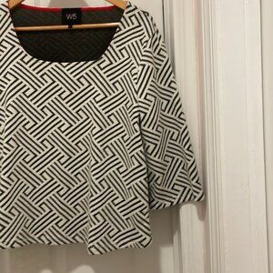 W5 NWOT WOMEN'S WHITE & BLACK TOP with 3/4 sleeves size L