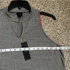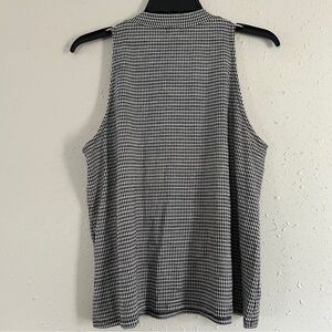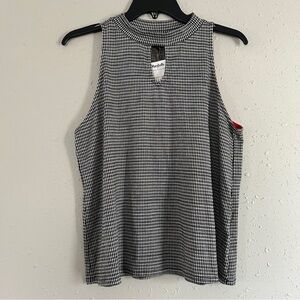 🦋 W5 NWT Black White Plaid Checkered Cutout Keyhole Sleeveless Blouse XL