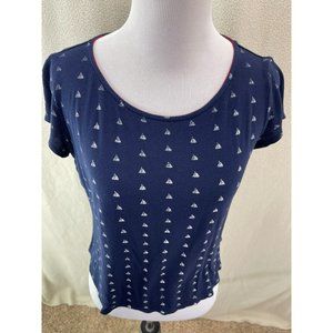 W-5 Navy Blue Nautical Sailboat Crop Top. Size Small Measures: 18“ (36“D) armpit to armpit, 18“ length. Preowned, normal wear. No discoloration, fading, stains, rips or holes. Clean, smoke-free home.