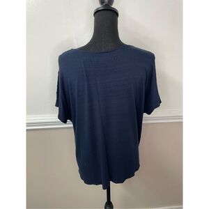 W5 Navy Short Sleeve Floral Blouse Size X-Large
