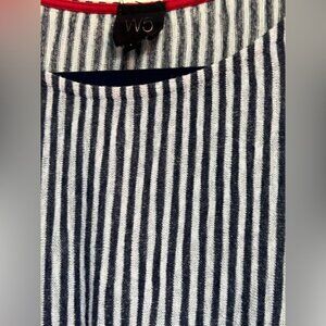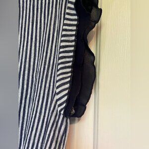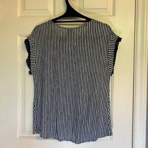 Stylish striped blouse with a twist front. Features ruffled sleeves. Perfect for versatile styling.