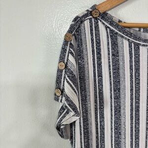 W5 Navy/White Striped Rayon Button Sleeve Blouse Top Size L