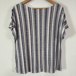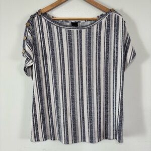 W5 Navy/White Striped Rayon Button Sleeve Blouse Top Size L