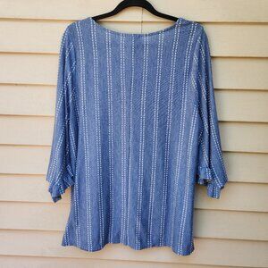 W5 Plus Blue Knit Blouse 3/4 Sleeves Ruffle Trim Textured Stripe Dots
