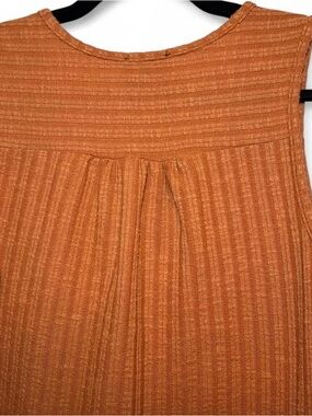 W5 Orange Button Up High/Low Ribbed Vest/Tank; fabric tag is worn but it is a cotton blend; in great, preloved condition.