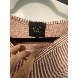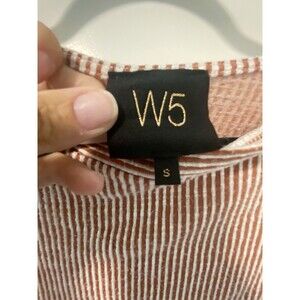 W5 Size Small Brown And White Stripe Button Accent Sleeves Scoop Neck Tee. Condition is Pre-owned. Shipped with USPS Ground Advantage.
