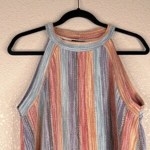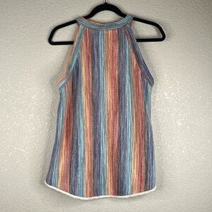 W5 Summer Spring Stripe High Neck Sleeveless Casual Top Size Large
