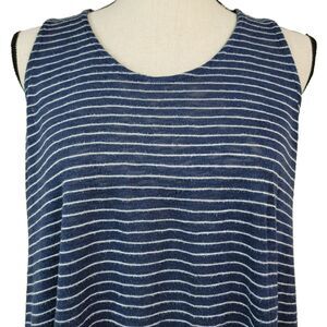 W5 Tank Top Womens Sz M Blue White Striped Exposed Back Zipper High Low Knit