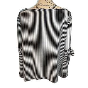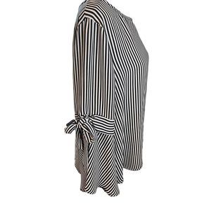 W5 Women's Black And White Striped Bell Sleeve With Bow Tie Blouse Size XL