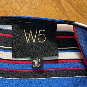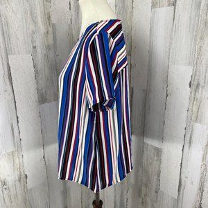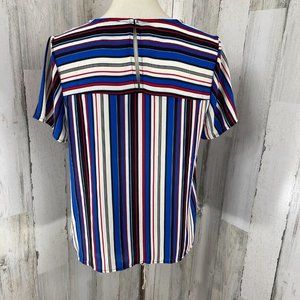 W5 Women's Blue Stripe Short Sleeve Semi Sheer Keyhole Back Shirt Top Blouse M