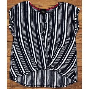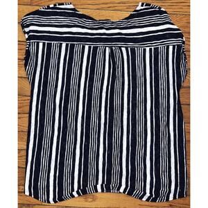 W5 Women's Large Gray Navy Blue & White Striped Roll Front Sleeveless Top