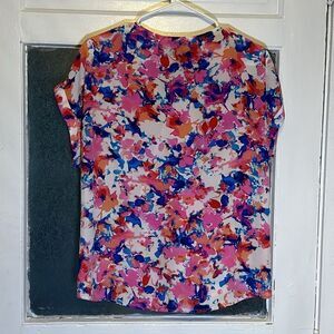 W5 Women’s Pink multicolor Floral Faux Wrap Short Sleeve Blouse Size large
