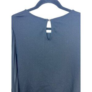 W5 Women’s XL Black Pleated Sheer Flowy Long Sleeve Elegant Top Office Dressy