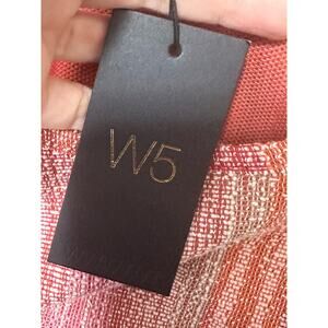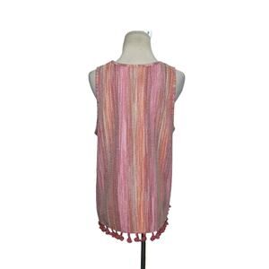 W5 pink red orange striped textured pompom hem sleeveless top size Medium