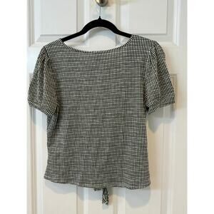 W5 Anthropologie size Medium front knot shirt the shirt is an off white/cream color with olive stripes. Extremely soft. In great shape just doesn’t have inside tag for how to care for it.