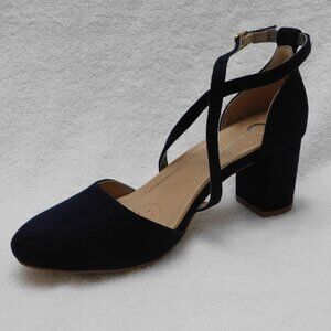 Step into a classic style with this comfort sole design by Journee Collection. This heel features micro suede material, crisscross buckle strap, an almond toe, and a heel height that will fit you perfectly.