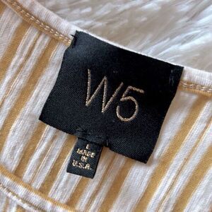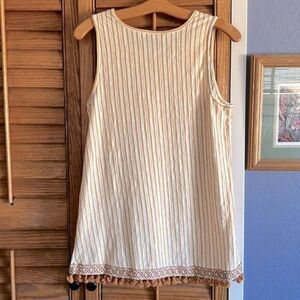 W5 Anthropologie Gold Stripe Tunic Tank Pom Pom Ribbon Hem Detail L