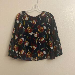 EUC W5 Concepts floral blouse with adorable bell sleeves!! This top has a cute zipper detail on the back.