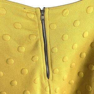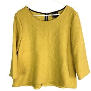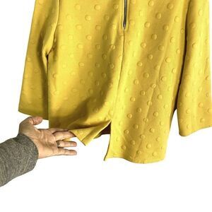 W5 Mustard yellow polka dot top, 3/4 sleeves, partial zip down the back, back vent, size XL
