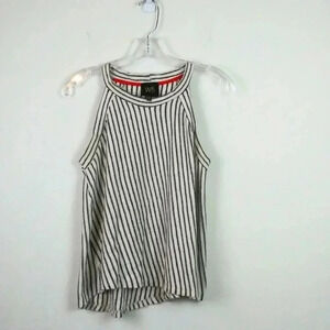 W5🌺Striped High Neck Sleeveless Flowy Blouse(M)