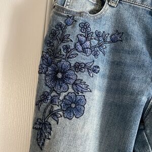 W62 Women’s Floral Embroidered Boot Cut Denim Jeans Size 8 Cotton Blend
