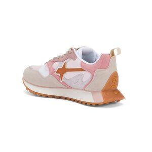 color block design, stitch trim, metallic details, brand logo accents, pull on loops, lightly padded footbed, grip sole