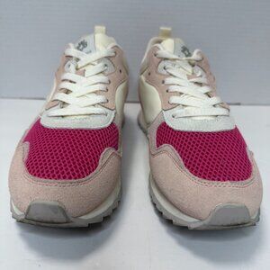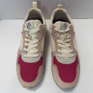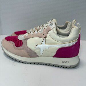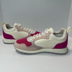 W6YZ Women's Lace-Up Sneakers Size 7.5 Fuchsia Pink Beige & White Mesh Suede
