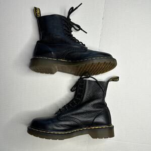 W7 Dr. Martens 1460 Combat Boots Black Leather 8-Eye Lace-Up Moto Grunge Punk