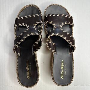 W8 Y2K VTG Sotto Sopra Leopard Print Platform Sandals Leather Coquette Mob Wife