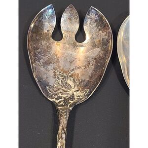 WA Italy Silverplate Salad Serving Spoon & Fork Set Floral Bridal Pattern 9.5"