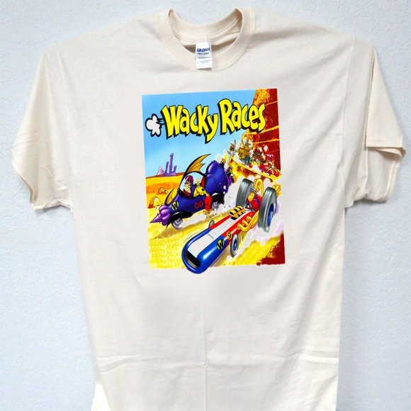 WACKY RACES VINTAGE CARTOON ART, COOL MENS IVORY TEE T-87