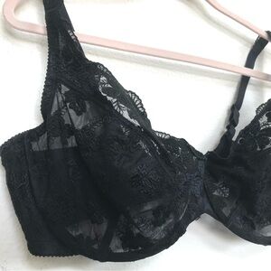 WACOAL 85139 Size 42DD Bra Black Capucine Floral Embroidered Underwire Vintage