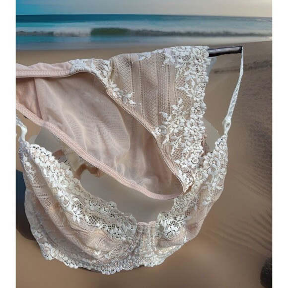 WACOAL Bra & Panty Set Embrace Beige w Cream Lace Underwire 36D/L NWOT