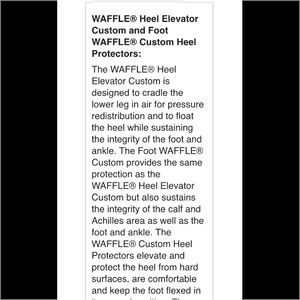 The waffle heel and leg cushion is to help with injuries and bedsores not intended to walk on.  They are a size medium and made in the USA.  Check the photos for more information on this item. They are tan and white with blow up opening for air. They retail for $65 each. See photos for more condition details. Excellent condition. Question please ask .  Thanks each one sold separately.  2 available.
