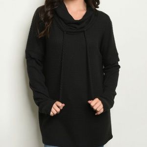 WAFFLE KNIT COWL NECK TUNIC TOP