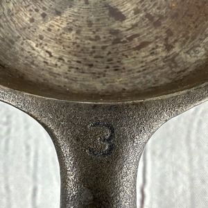 WAGNER WARE Cast Iron 6 1/2 Inch Skillet, Made In USA, #3, "K". Needs some TLC. See photos for more details